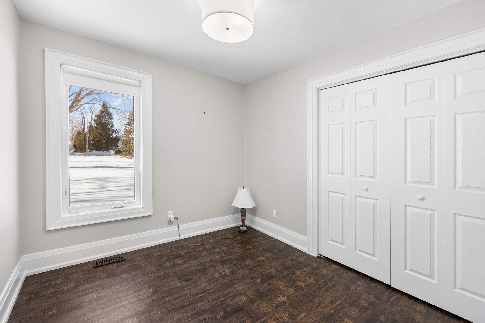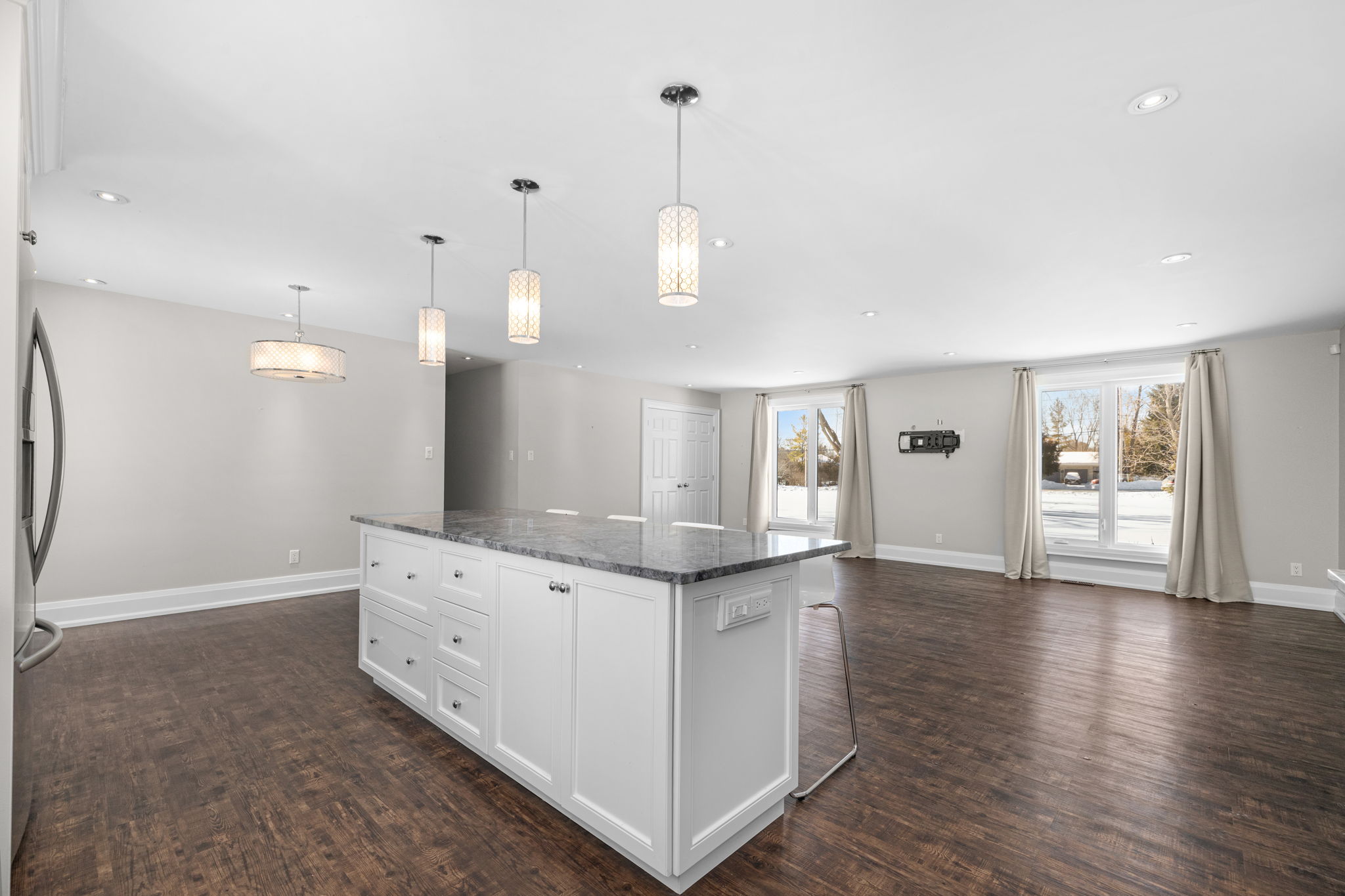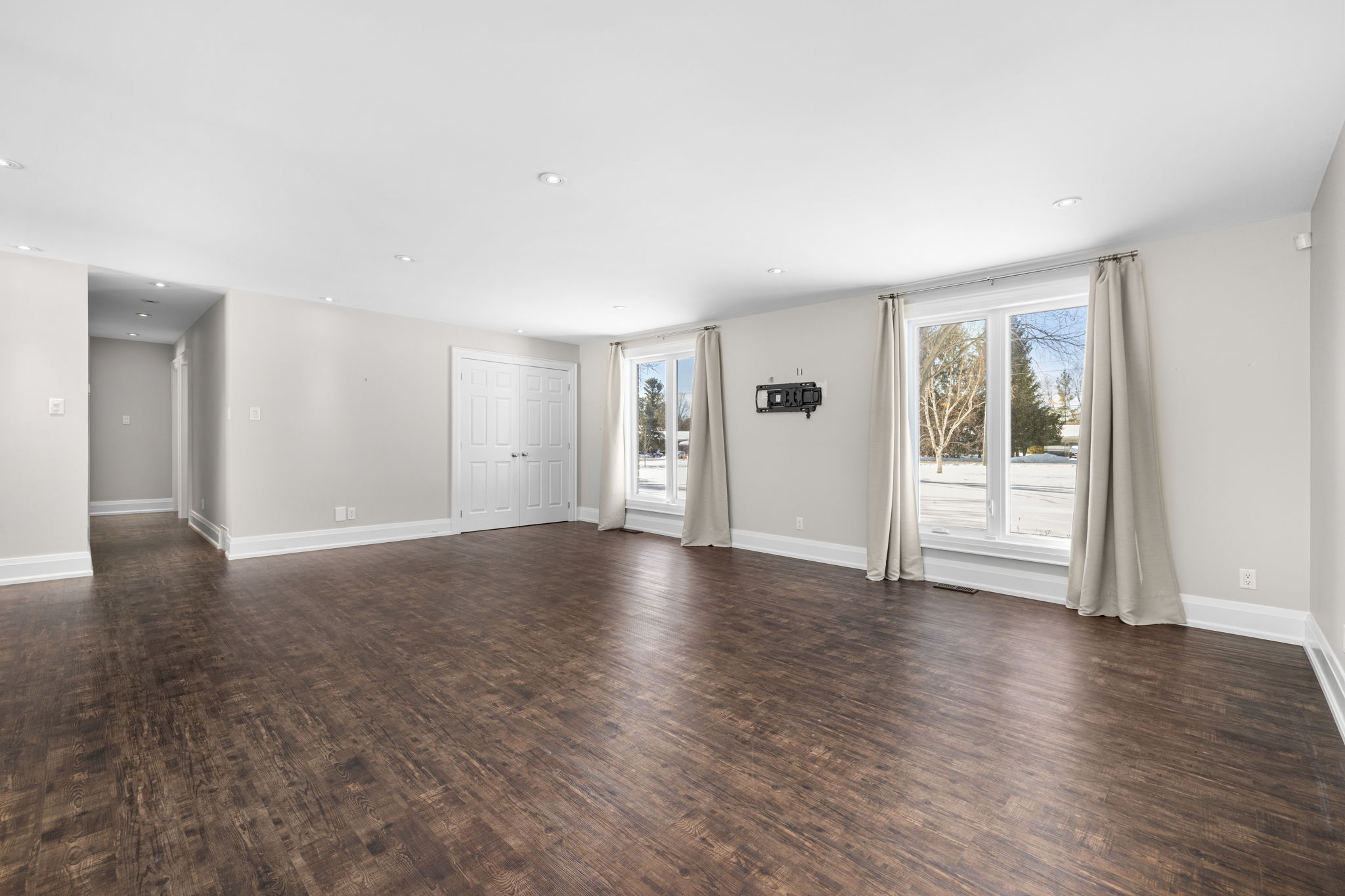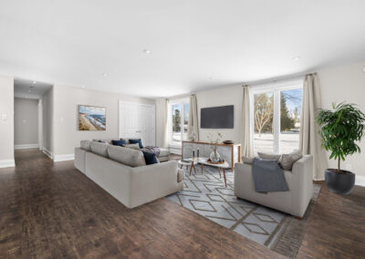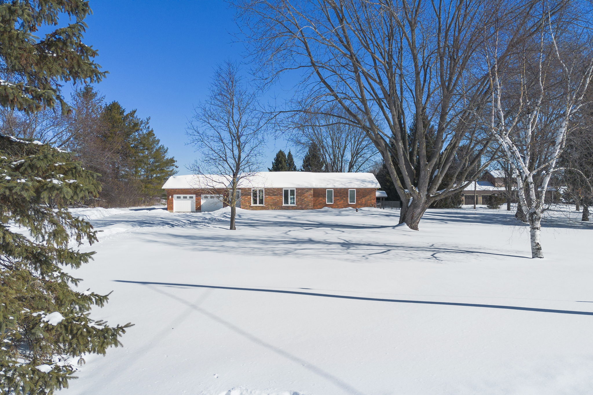 Welcome to this beautifully updated 3-bedroom bungalow offering exceptional space, comfort, and privacy-inside and out. The main level features a bright, open-concept layout where the living room, dining area, and kitchen flow seamlessly together. Wide-plank flooring, neutral finishes, and large windows create a warm, inviting atmosphere throughout. The modern kitchen is thoughtfully designed with white cabinetry, stone countertops, stainless steel appliances, and generous prep space-perfect for both everyday living and hosting. The primary bedroom retreat is a standout, complete with ample closet space and a spa-inspired ensuite featuring dual rainfall showers, body jets, and sleek glass panels. A true hotel-style experience. Two additional bedrooms offer flexibility for family, guests, or a dedicated home office. A second full bathroom and convenient main-level laundry complete the main floor. Downstairs, the fully finished basement provides an impressive amount of additional living space. With multiple spacious rooms, large windows, and plush carpeting, this level is ideal for a recreation room, home gym, office, media space, or guest area. The layout allows for separation of spaces while still feeling open and functional. Outside, the home sits on a sprawling, private lot surrounded by mature trees, offering a peaceful country-style setting with room to enjoy all seasons. The yard is partially fenced and provides endless possibilities for outdoor living. A large, heated double garage offers plenty of space for vehicles, storage, or hobbies. This property offers the rare combination of modern interior finishes, extensive living space, and a generous lot. Making it an excellent opportunity for tenants seeking comfort, privacy, and flexibility. Enjoy truly low-maintenance living with snow removal and lawn care included in the monthly rent. A backup generator is also available for tenant use, providing comfort and reliability no matter the season.