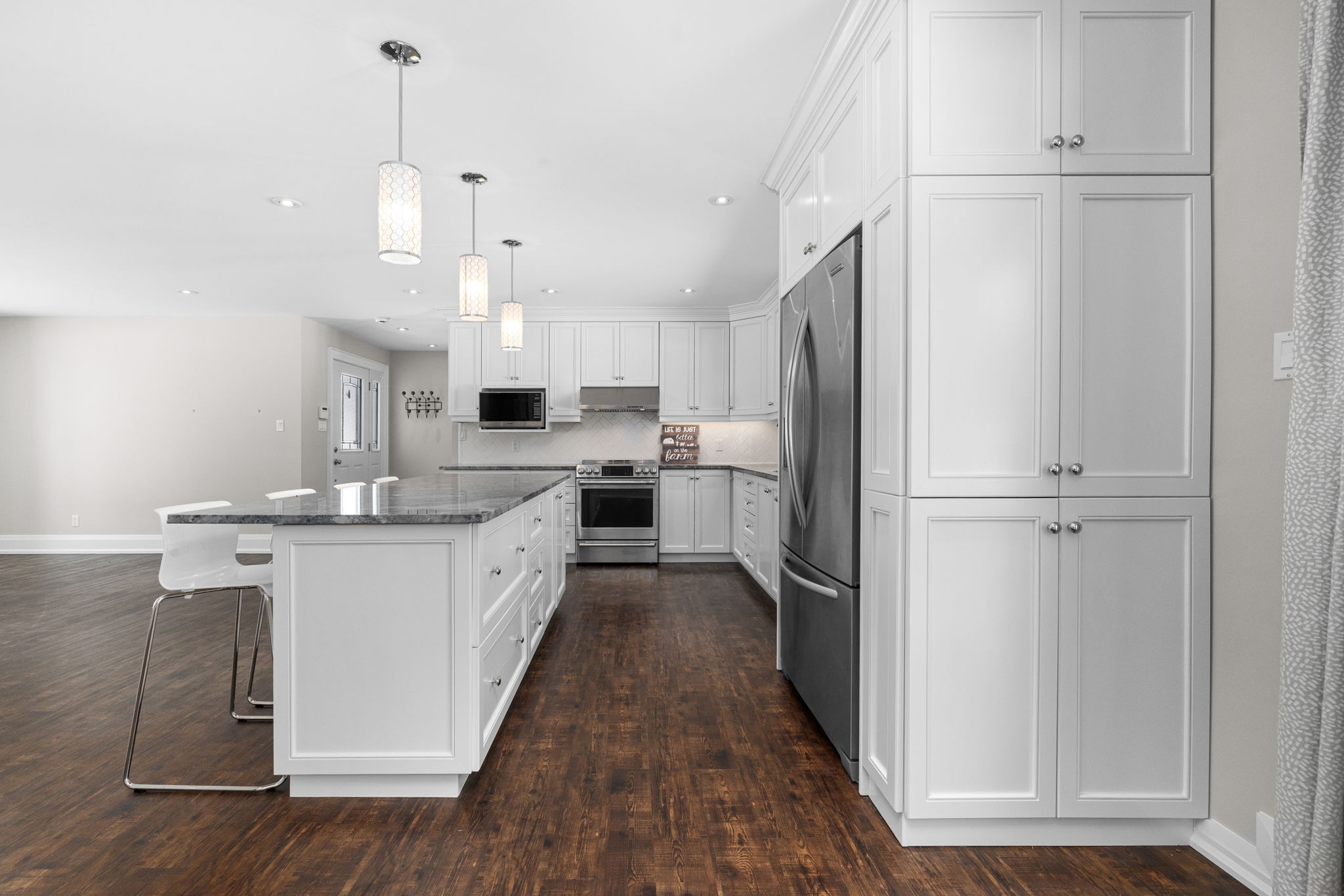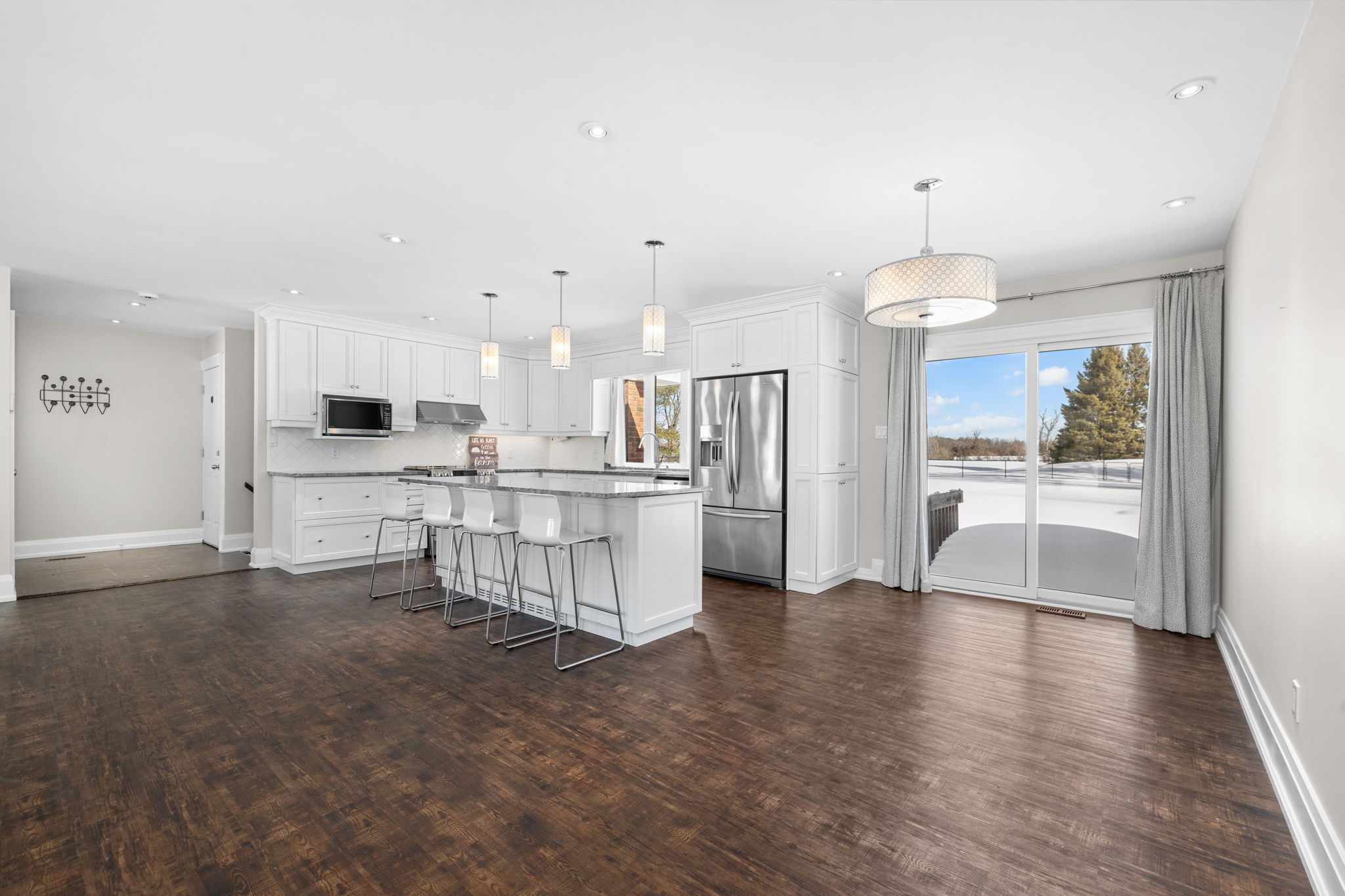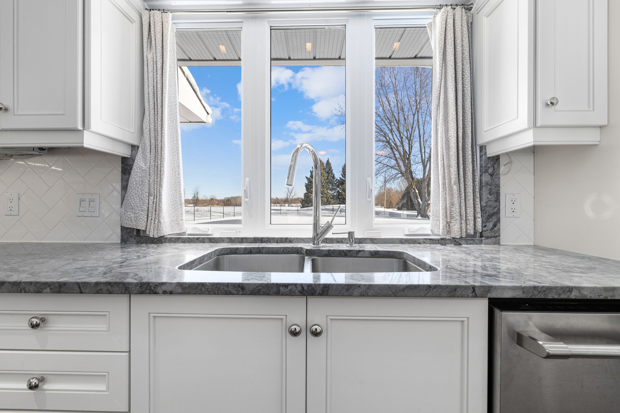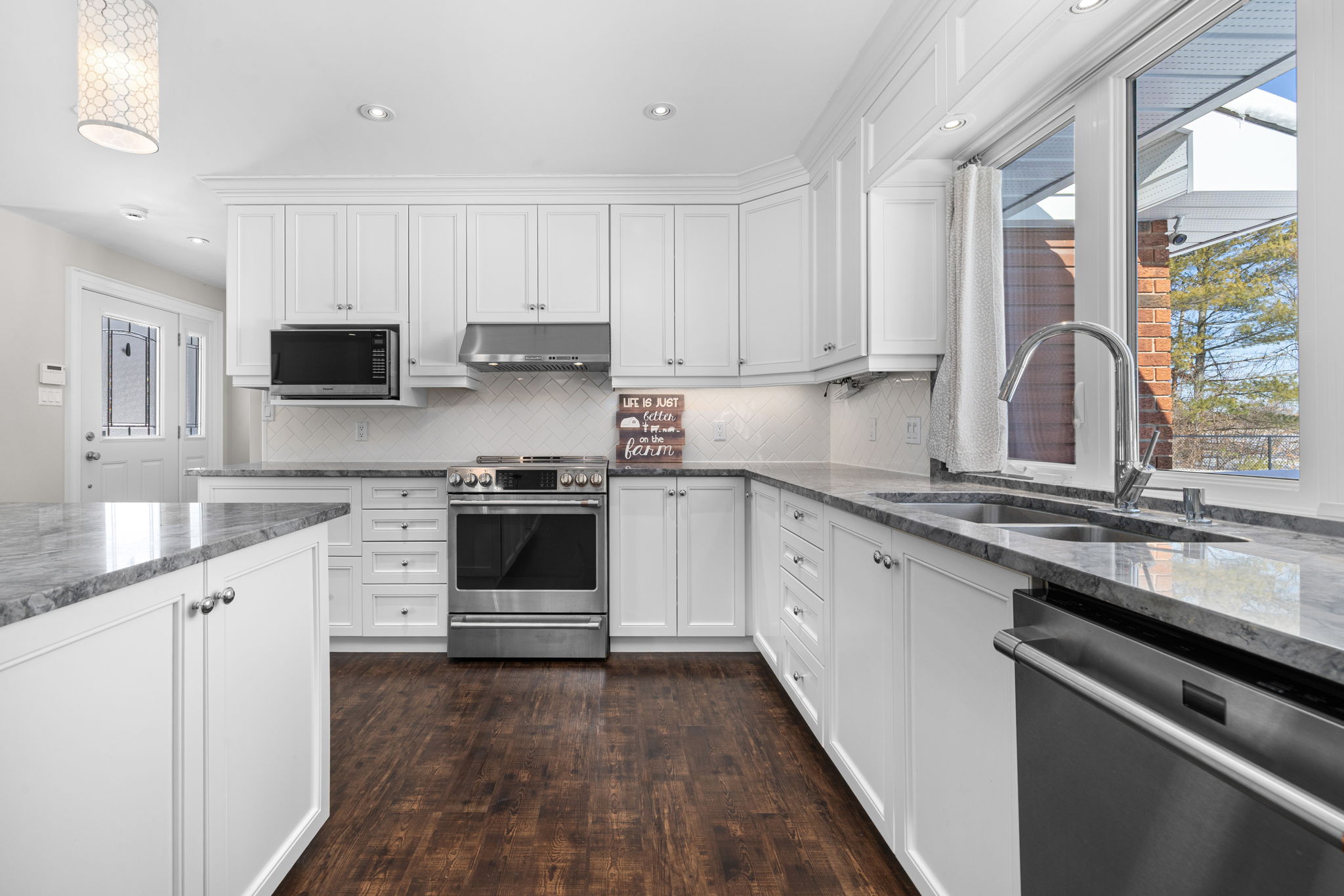 Welcome to this beautifully updated 3-bedroom bungalow offering exceptional space, comfort, and privacy-inside and out. The main level features a bright, open-concept layout where the living room, dining area, and kitchen flow seamlessly together. Wide-plank flooring, neutral finishes, and large windows create a warm, inviting atmosphere throughout. The modern kitchen is thoughtfully designed with white cabinetry, stone countertops, stainless steel appliances, and generous prep space-perfect for both everyday living and hosting. The primary bedroom retreat is a standout, complete with ample closet space and a spa-inspired ensuite featuring dual rainfall showers, body jets, and sleek glass panels. A true hotel-style experience. Two additional bedrooms offer flexibility for family, guests, or a dedicated home office. A second full bathroom and convenient main-level laundry complete the main floor. Downstairs, the fully finished basement provides an impressive amount of additional living space. With multiple spacious rooms, large windows, and plush carpeting, this level is ideal for a recreation room, home gym, office, media space, or guest area. The layout allows for separation of spaces while still feeling open and functional. Outside, the home sits on a sprawling, private lot surrounded by mature trees, offering a peaceful country-style setting with room to enjoy all seasons. The yard is partially fenced and provides endless possibilities for outdoor living. A large, heated double garage offers plenty of space for vehicles, storage, or hobbies. This property offers the rare combination of modern interior finishes, extensive living space, and a generous lot. Making it an excellent opportunity for tenants seeking comfort, privacy, and flexibility. Enjoy truly low-maintenance living with snow removal and lawn care included in the monthly rent. A backup generator is also available for tenant use, providing comfort and reliability no matter the season.
